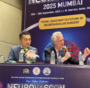 2025年9月26日〜28日、インド・ムンバイで開催された国際学会 Neuro Vascon 2025 Mumbai に招聘され、世界的に著名な脳神経外科医 Michael T. Lawton 教授(Barrow Neurological Institute)と共に座長を務めました。