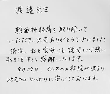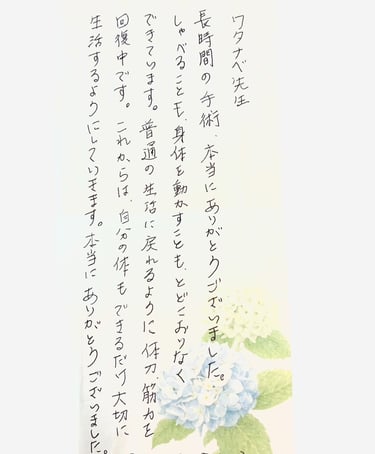 術後、私と家族にも説明と心強い励ましを下さり感謝いたします。