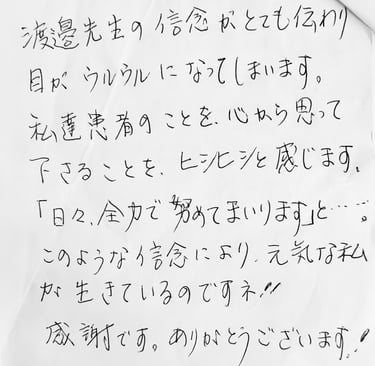私たち患者のことを心から思ってくださることをヒシヒシと感じます。