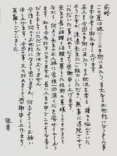 この度は娘の手術にあたり、多大なるお世話になりました事、まずは厚く御礼申し上げます。