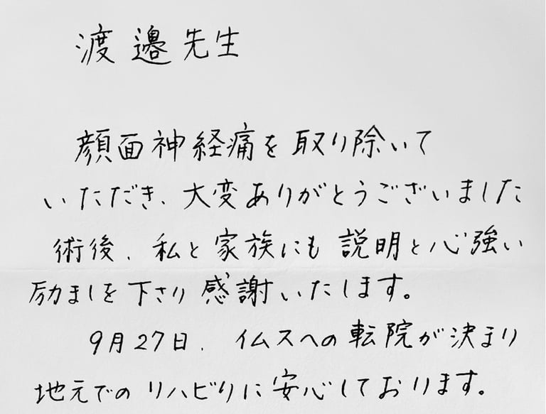 顔面神経痛を取り除いていただき、大変ありがとうございました。